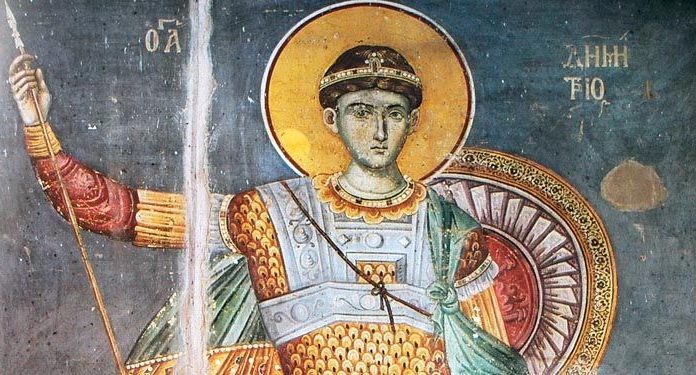Свети и славни Великомучениче Христов Димитрије, брзи помоћниче и топли заступниче за оне који ти са вером притичу. Предстојећи Небеском Цару, а пошто имаш слободу, умоли Га да нам подари опроштај грехова и да нас избави од помора смртоносних...