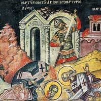Када погибе папа Стефан (в. 2. авг.), на његово место би постављен Сикст свети, који беше родом Атињанин, испрва филозоф а потом хришћанин. У то време епископи римски гинули су један за другим тако, да постати епископом у Риму...