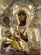 Икона Тројеручица је, према предању, исцелила руку Светог Јована Дамаскина када му је она одсечена по заповести дамаског калифа. Свети Јован Дамаскин се наиме како писмима тако и речима борио против иконобораца, али је међутим био оклеветан и неправедно кажњен. Исцелила га је Пресвета Богородица, док се пред овом њеном иконом ожалошћен молио. Он је из благодарности за учињену милост придодао њеном лику трећу руку, по чему је она добила име Тројеручица.