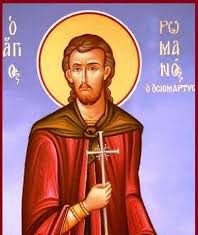Прост и неписмен сељак из Карпениса. Сазнавши о јунаштву и слави мученика Христових, млади Роман пожели и сам мучеништва. Оде у Солун где почне...