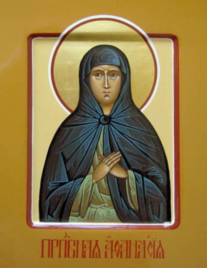 Рођена на острву Егини, од родитеља богатих и благородних. Раздаде имање своје ништим и удаљи се у манастир, где налагаше на себе све тежи и тежи подвиг. Узимала је храну само једном на дан, и то хлеб и воду; уз Часни Пост једном у два дана; а само на Рождество и на Ускрс кушала је уље и рибу. И ако је била игуманија у манастиру, била је слушкиња свима осталим сестрама, и стидела се да њу неко послужи. Удостојила се великог дара чудотворства, и за живота и по смрти. Упокојила се у Господу 860 год.