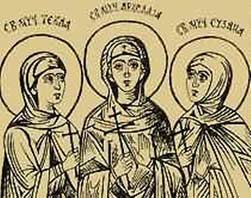 Као монахиње, чисте и девствене, подвизаваху се у једном незнатном манастиру близу Рима. Но када наста гоњење хришћана под злим царем Диоклецијаном, оне одбегну у Кампанију, и тамо се настане близу града Ноле. Њихов свети живот не могаше се сакрити од људи, и људи из околних места почеше к њима долазити тражећи савет, поуку и помоћ у разним мукама и болестима. Но најзад беху ухваћене од незнабожаца и пред суд изведене. Оне јавно и слободно исповедише веру у Христа. Када судија Леонтије упита Архелају свету о вери Христовој, одговори она: „Силом Христовом попирем силу ђаволску, људе учим разуму, да познаду једног истинитог Бога, а именом Господа мога Исуса Христа јединородног Сина Божјег даје се кроз мене слушкињу Његову здравље свима болесним“. Све три девице беху бијене, врелом смолом поливане, у тамници глађу морене, и напослетку мачем посечене. Када беху изведене на губилиште, јавише им се ангели, које и неки од џелата видеше и толико се од тога уплашише, да не смедоше дићи мача на свете девице. Но ове их охрабрише да изврше своју дужност. И тако беху посечене као јагањци 293. године и отидоше у Царство Христово, да се у вечности одмарају и наслађују гледањем лица Божја.