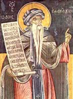 Најпре први министар калифа Абдалмелеха, а потом монах у манастиру Светог Саве Освећеног. Због ватреног заступања иконопоштовања у време иконоборног цара Лава Исаврјанина, оклеветан би Јован од овога цара код калифа, који му одсече десну руку. Он припаде на молитву пред иконом Пресвете Богородице, и рука му се састави и зарасте чудесно. Видећи то чудо, калиф се раскаја, но Јован не хте више остати код њега као великаш, него се повуче у манастир, где беше од почетка узор монасима у смерности, послушности и свима прописаним подвизима монашким. Испевао посмртне песме, саставио Октоих, Ирмологију, Месецослов, Канон пасхални, и написао многа богословска дела, с надахнућем и дубином. Велики као монах, и као песник, и као богослов, и као војник истине Христове, Дамаскин се рачуна у велике Оце Цркве. Упокојио се мирно око 776. године у стотину четвртој години свога живота.