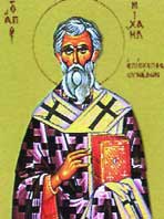 Свети Михаил, епископ синадски. Овај свети и умни јерарх посвети себе од детињства на службу Христу. Подвизаваше се заједно са светим Теофилактом Никомидијским. Једном у сушно време ова два светитеља својим молитвама низведоше обилан дажд на земљу. Због свог подвижничког и девственог живота од своје ране младости, би изабран и посвећен од патријарха Тарасија за епископа синадског. Участвовао на VII васељенском сабору. По жељи царевој ишао калифу Харун-ал-Рашиду да води преговоре о миру. У време злога Лава Јерменина свргнут са престола архијерејског због поштовања икона и послат у изгнанство, где у беди и сиромаштини сконча оставши до краја веран Православљу и 818. године пресели се у царство Христа Цара