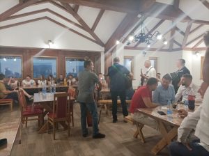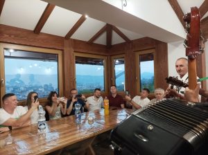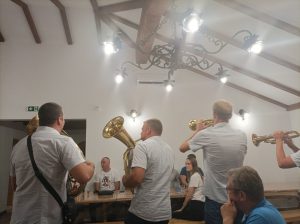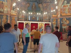 Након обиласка цркве, гости су смештени у Парохијски дом, где су наставили дружење уз домаћу ракију и трубаче, поклоне. Овој неформално вечери, прикључило се и неколико локалних привредника који су одмах прионули на преговоре с руским колегама.