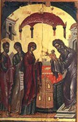 У четрдесети дан по Рождеству донесе Пресвета Дева свог божанског Сина у храм јерусалимски да Га, сходно закону, посвети Богу и себе очисти (Левит 12, 2-7; Исход 12, 2). Иако ни једно ни друго није било потребно, ипак Законодавац није хтео никако да се огреши о Свој Закон, који је Он био дао кроз Свога слугу и пророка Мојсеја. У то време држао је чреду у храму првосвештеник Захарија, отац Јована Претече. Он стави Дјеву Марију не на место за жене, него на место за девојке у храму. Том приликом појаве се у храму две чудне личности: старац Симеон и Ана, кћи Фануилова. Праведни старац узе на руке своје Месију и рече: „Сад отпушташ у миру слугу својега, Господе, по ријечи својој…“ Још рече Симеон за Христа Младенца: „Гле, овај лежи да многе обори и подигне у Израиљу, и да буде знак против кога ће се говорити“ (Лк 2, 29 и 34). Ана пак која од младости служаше Богу у храму постом и молитвама, и сама познаде Месију, па прослави Бога и објави Јерусалимљанима о доласку Дугочеканога. А фарисеји, присутни у храму, који видеше и чуше све, расрдише се на Захарију што стави Деву Марију на место за девојке, доставише то цару Ироду. Уверен да је то Нови Цар, о коме су му звездари с Истока говорили, Ирод брзо посла да убију Исуса. Но у међувремену божанска породица беше већ измакла из града и упутила се у Мисир, по упутству ангела Божјег. Дан Сретења празнован је од самог почетка, но торжествено празновање овога дана установљено је нарочито 544. године у време цара Јустинијана.