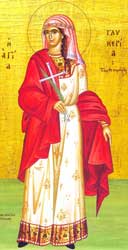 Света мученица Гликерија би кћи некога гувернера Рима. Осиротевши по смрти очевој, настани се Гликерија у Трајанопољу у Тракији. У време нечестивог цара Антонина би Гликерија изведена да принесе жртву идолу Дијевом. Она нацрта крст на своме челу; па кад је намесник царски упита, где је њена лампада (јер сви ношаху лампаде у рукама), Гликерија показа крст на челу и рече: „Ово је моја лампада“. По њеној молитви гром удари у идола и разби га у комаде. Разгњеви се намесник и нареди те је бише и у тамницу вргоше. И запечати намесник тамнична врата, решен да умори девицу глађу. Но ангел Божји јављаше се Гликерији и даваше јој небесну храну. После извесног времена, када намесник мишљаше да је мученица морала скончати од глади, отвори тамницу и зачуди се, кад је виде здраву, светлу и веселу. Тамничар Лаодикије, видевши то чудо, и сам исповеди Христа Господа, и одмах би посечен. По том Гликерија би бачена у пећ огњену, но оста неповређена од огња. Стојећи усред огња, она хваљаше Господа спомињући чудо на три отрока у пећи вавилонској. Најзад би бачена пред лавове, и помоливши се Богу, ова света дева предаде душу своју Господу, за кога је јуначки претрпела многе муке. Чесно пострада 177. године. Из њених моштију потекло је целебно миро, којим се лечаху болесници од најтежих болести.