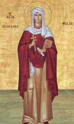 Рођена у Иконији од родитеља знаменитих али незнабожачких. Као осамнаестогодишња девојка била верена за некога младића у оно време, када апостол Павле дође са Варнавом у Иконију на проповед Јеванђеља. Слушајући Павла три дана и три ноћи Текла се обрати потпуно вери Христовој и завешта се живети у девству. Видевши је мајка, како и не гледа више на свога вереника нити помишља на брак, поче је најпре саветовати а по том тући и морити глађу. Најзад је предаде судији и захтеваше, опака мајка, да је огњем сажеже. Судија је баци на огањ, но Бог је спасе неповређену. Тада Текла пође за апостолом Павлом, и дође са њим у Антиохију. Привучен спољашном красотом Теклином некакав старешина градски хтеде је узети к себи силом, но Текла се ишчупа из његових руку. Тај старешина оптужи је кнезу као хришћанку, која се гнуша брака. Кнез је осуди на смрт и баци пред зверове, но зверови се не такнуше тела свете девице. Удивљен овим упита је кнез: „ко си ти, и каква је сила у теби, да ти ништа не може нашкодити?“ Одговори му Текла: „слушкиња сам Бога живога“. Тада је кнез пусти на слободу, и она пође проповедати Јеванђеље, и успе да обрати многе у веру истиниту, међу којима и неку угледну и чесну удовицу Трифену. По томе се св. Текла, по благослову апостола Павла, удаљи у једно пусто место близу Селевкије. Ту се она дуго подвизаваше и исцелењем болесника чудотворном силом обраћаше многе у хришћанство. Позавидеше јој лекари и врачари из Селевкије, те послаше неке младе људе, да је оскверне, надајући се да ће она кад изгуби девичанство изгубити и моћ своју чудотворну. Текла бегаше од оних дрских младића, и кад виде да ће је ухватити, она се помоли Богу за помоћ пред једном стеном, и стена се раступи и сакри ову св. девицу и невесту Христову. И би јој та стена и скровиште и гроб. О овој чудесној хришћанској јунакињи и светитељки вели св. Златоуст „чини ми се да видим ову блажену деву како приноси Господу једном руком девство а другом руком мучеништво“.