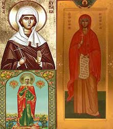 Све три ове мученице беху из Кесарије Палестинске. Када би гоњење хришћана, оне се повукоше из града у једну колибу, и ту се неусипно Богу мољаху, постећи и плачући, да би се вера Христова распрострла по васцелом свету и да би престало гоњење Цркве. По некој клевети беху изведене на суд, мучене и мукама уморене 304. године. Тако ове славне девице венчаше се венцем мученичким.