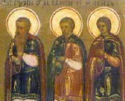 Гурије и Самон беху угледни грађани Едески. У време једног гоњења на хришћане они се склонише ван града и живљаху у посту и молитви храбрећи правоверне, који њима притицаху за савет. Но беху ухваћени и пред судију изведени. Судија им припрети смрћу, ако се не покоре наредби царској о поклоњењу идолима. Одговорише му свети мученици Христови: „ако се покоримо наредби царској, пропашћемо, ма нас ти и не убио.” После љутих мука беху бачени у тамницу, у којој осташе од 1. августа до 10. новембра трпећи глад, таму и тескобу. Тада поново бише изведени и мучени; па како осташе непоколебљиви у вери Христовој, бише на смрт осуђени и мачем посечени 322. год. при опаком цару Ликинију. Доцније и Авив ђакон Едески, прими муке за Христа Господа свога, и у пламену предаде дух свој Богу. Мајка његова извади из огња тело његово целосно и сахрани у гроб заједно са св. Гуријем и Самоном. Када преста гоњење, подигоше хришћани храм у част три мученика, Гурија, Самона и Авива, и положише њихове чудотворне мошти у један ковчег. Од многобројних чудеса тих дивних светитеља Божјих једно је нарочито знаменито. Нека удовица у Едеси имаше ћерку девојку, којом се ожени један Гот војник из грчке војске. Па како се мајка бојаше да дв своју ћерку у далеку земљу, то се Гот закле на гробу света три мученика, да никакво зло неће девојци учинити него да ће је узети за закониту жену, пошто је рече, нежењен. У ствари он беше жењен. И када одведе девојку на своју постојбину држаше је не као жену него као робињу, докле не умре његова законита жена. Тада он у договору са осталим сродницима својим закопа са мртвом женом и своју живу робињу. Робиња се с плачем мољаше св. мученицима, да је спасу. И они јој се јавише у гробу, узеше је и тренутно пренеше из Готске земље у Едесу, у своју цркву. Сутрадан, када цркву отворише, нађоше девицу крај гроба светитеља Божјих, и сазнаше о чудесном избављењу њеном.