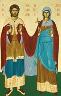 Беху обоје из Александрије, Антонина чесна девица а Александар царски војник. Обоје хришћани. Прво Антонина би изведена на суд и на мучење. Па кад њу бацише у тамницу, Александар, по наређењу ангела Божјег, оде у тамницу (иако дотле непознат Антонини), огрну је својим војничким плаштом, рече јој да обори главу и да иде кроз стражаре пред вратима. Тако девица избегне, а војник остане у тамници. Тада изведоше Александра пред судију и почеше истјазавати због имена Христова. Чувши за то Антонина, сама се пријави судији, који их обоје поче стављати на разне муке. Одсече им руке, потом их бијаше по голом телу, а ране им паљаше свећама, и најзад баци у огањ, који беше наложен у једној рупи, и затрпа их земљом. Чесно пострадаше ради љубави Христове и преселише се у дворе Цара небескога 3. маја 313. године. Злобни судија, Фист, у часу смрти мученика, поста нем, и спопаде га дух бесни који га мучаше седам дана и најзад умори.