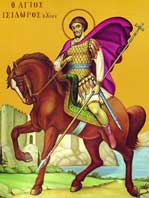 У време царовања Декијева овај Исидор беше узет са острва Хиоса силом у војску. Он се одмалена држаше вере Христове и живот свој провођаше у посту, молитви и добрим делима. Па кад се у војсци проказа као хришћанин, узе га војвода на одговор и саветоваше му да се одрекне Христа и принесе жртве идолима. Одговори светитељ: „Ако ми и убијеш тело, над душом мојом немаш власти. Ја имам истинитог и живог Бога Исуса Христа, који и сад у мени живи и по смрти мојој биће са мном; и ја сам у Њему, и остаћу Њему, и нећу престати да исповедам Његово свето име докле је дух у телу моме“. Нареди војвода, те најпре бише Исидора воловским жилама, а потом одсекоше му језик. Но и без језика Исидор Духом Божјим говораше и исповедаше име Христово. Међутим, војводу постиже казна Божја, и он на једанпут занеми. Нем војвода даде најзад знак да посеку Исидора. А Исидор се обрадова тој пресуди па хвалећи Бога, изађе на губилиште где му глава би одсечена 251. године. Његов друг Амоније погребе тело његово, но зато и сам пострада и прими венац мученички.