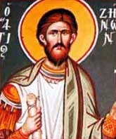 Свети Зинон беше официр римски у граду Филаделфији Арабијској. А Зина му беше слуга. Када у време цара Максимијана наста гоњење хришћана, усуди се свети Зинон те изађе пред војводу Максима, исповеди своју веру у једнога живога Бога, и посаветова Максима, да се и он мане мртвих идола и да прими једину истиниту веру. Наљути се војвода, па баци Зинона у тамницу. А када верни Зина посети свога господара у тамници, то и он би ухваћен и ухапшен. Затим обојица беху мучени за Христа и најзад бачени у огањ, у који насуше незнабошци уља. Душе њихове увенчаше се венцима у царству Христовом, а телесни остаци бише сахрањени у цркви светог Георгија у месту званом Кипарисион.