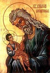 време цара мисирског Птоломеја Фила-делфа изабран би и овај Симеон као један од знамените Седамдесеторице, којима би поверен посао превођења Библије са јеврејског на грчки језик. Симеон рађаше свој посао савесно, но када превођаше пророка Исаију, па дође до оног пророчанства: ево дјева ће затрудњети и родиће сина, он се збуни, па узе нож да избрише реч дјева и замени је са речју „млада жена“, и да тако и преведе на грчки. Али у том тренутку јави се Симеону ангел Божји и задржа га од његове намере, објаснивши му да је пророчанство истинито, и да је тачно записано. А да је истинито и тачно, рече му још весник Божји, увериће се и он сам лично, јер по Божјој вољи неће умрети док не види Месију рођенога од девојке. Обрадова се праведни Симеон таквоме гласу с неба, остави пророчанство неизмењено, и захвали Богу што га удостојава да доживи и види Обећанога. Када Младенац Исус би донесен Дјевом Маријом у храм јерусалимски, Дух Божји то јави Симеону, који беше веома стар и бео као лабуд. Симеон брзо оде у храм и у храму познаде и Дјеву и Младенца по светлости што зрачаше око глава њихових као ореол. Радостан старац узе Христа на руке своје и замоли Бога: „Сад отпушташ у миру слугу својега, Господе, по ријечи својој; јер видјеше очи моје спасење Твоје“ (Лк 2, 29-30). Ту се десила и Ана пророчица, кћи Фануилова, која и сама познаде Месију и објави Га народу. Ани је тада било осамдесет четири године. Ускоро по том престави се свети Симеон. Овај праведни старац Симеон сматра се заштитником мале деце.