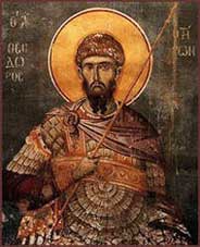 Тирон значи регрут. Тек што свети Теодор беше ступио у војску, у пук Мармаритски, у граду Амасији, када отпоче гоњење хришћана под царевима Максимијаном и Максимином. Како Теодор не хте крити да је и он хришћанин, то би потегнут на суд и вргнут у тамницу, и тамница закључана и запечаћена. Јер, нечастиви судија хоћаше Теодора уморити глађу. У тамници се јави Теодору сам Господ Христос и охрабри мученика Свога говорећи му: „Не бој се, Теодоре, Ја сам с тобом, не узимај више земаљске хране и пића, јер ћеш бити у другом животу, вечном и непролазном, са Мном на небесима“. У томе се јави мноштво ангела у тамници, и сва тамница се осветли пресјајно, и стражари тамнички видеше ангеле у бело одевене, и врло се уплашише. Потом би Теодор свети изведен, истјазаван и на смрт осуђен. Бачен би у огањ, и предаде душу своју свету Богу вишњем. Пострадао 306. године.