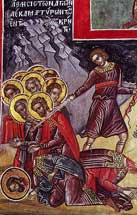 Пострадаше за Христа Господа у време гоњења Декијева 250. године. Њихова су имена: Теодул, Сатурнин, Евпор, Геласије, Евникијан, Зотик, Помпије, Авгатопус, Василид и Еварест. Сви беху угледни и чесни грађани, најбољи међу најбољим. Када их изведоше на губилиште, они беху радосни веома, и препираху се, ко ће од њих први бити посечен, јер сваки жељаше први поћи ка Христу љубљеном. Потом се помолише: „Прости, Господе, слугама Твојим, и прими изливену крв нашу за нас, за сроднике наше и пријатеље и за све отечество, да се сви ослободе од таме незнања и Тебе познаду, истиниту светлост, о Царе вечни!“ Посечени беху и у царство славе пређоше, да се радују вечно.