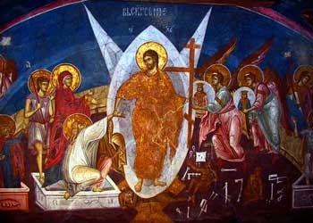 Господ Исус Христос сахрањен је у Гетсиманском врту у једну пећину, коју запечатише великим каменом и поставише стражу. У недељу, трећи дан по Распећу сиђе Анђео Господњи и здроби камен на улазу у пећину и Исус Христос изађе напоље и васкрсну. Лице му беше као муња, а одело бело као светлост. Војници се уплашише и побегоше, вичући: „Христос је Васкрснуо!“ Када изјутра жене Мироноснице дођоше да обиђу Христов Гроб, затекоше га празног и анђео им рече да иду у град и јаве осталима да је Господ наш Васкрснуо из мртвих. Оне одмах послушаше и одоше да ову радосну вест разгласе свима. И од тада почеше се сви поздрављати поздравом: „Христос Васкресе“ и „Ваистину Васкресе“. Па чак и данас, после 2000 година, ми се поздрављамо истим тим поздравом. Васкрс је највећи хришћански празник, јер на тај дан Исус Христос, Господ Бог наш васкрсну из мртвих, победи смрт и свим људима, од прародитеља Адама и Еве дарова вечни живот. Због великог значаја овог догађаја свака недеља у току године посвећена је Васкрсу и свака се сматра за мали Васкрс. То је покретни празник и празнује се после јеврејске Пасхе у прву недељу после пуног месеца, који пада на сам дан пролећне равнодневнице, или непосредно после ње. Најраније може да падне 4 априла, а најкасније 8 маја (по новом календару).